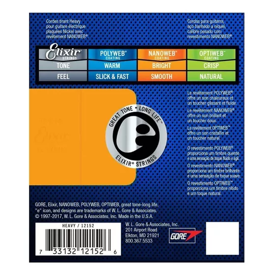 Cordas graves (4ª a 6ª): Aço niquelado revestido com Nanoweb, enroladas sobre alma de aço