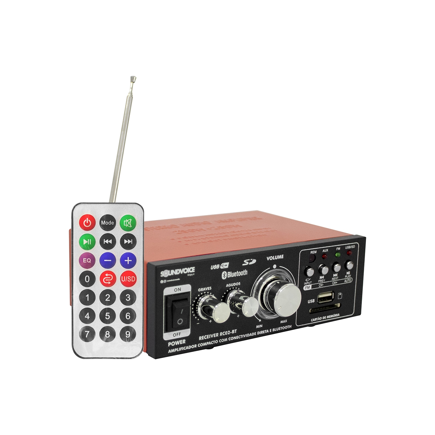 Conectividade completa: Reprodução via USB, SD/MMC, Bluetooth e rádio FM.