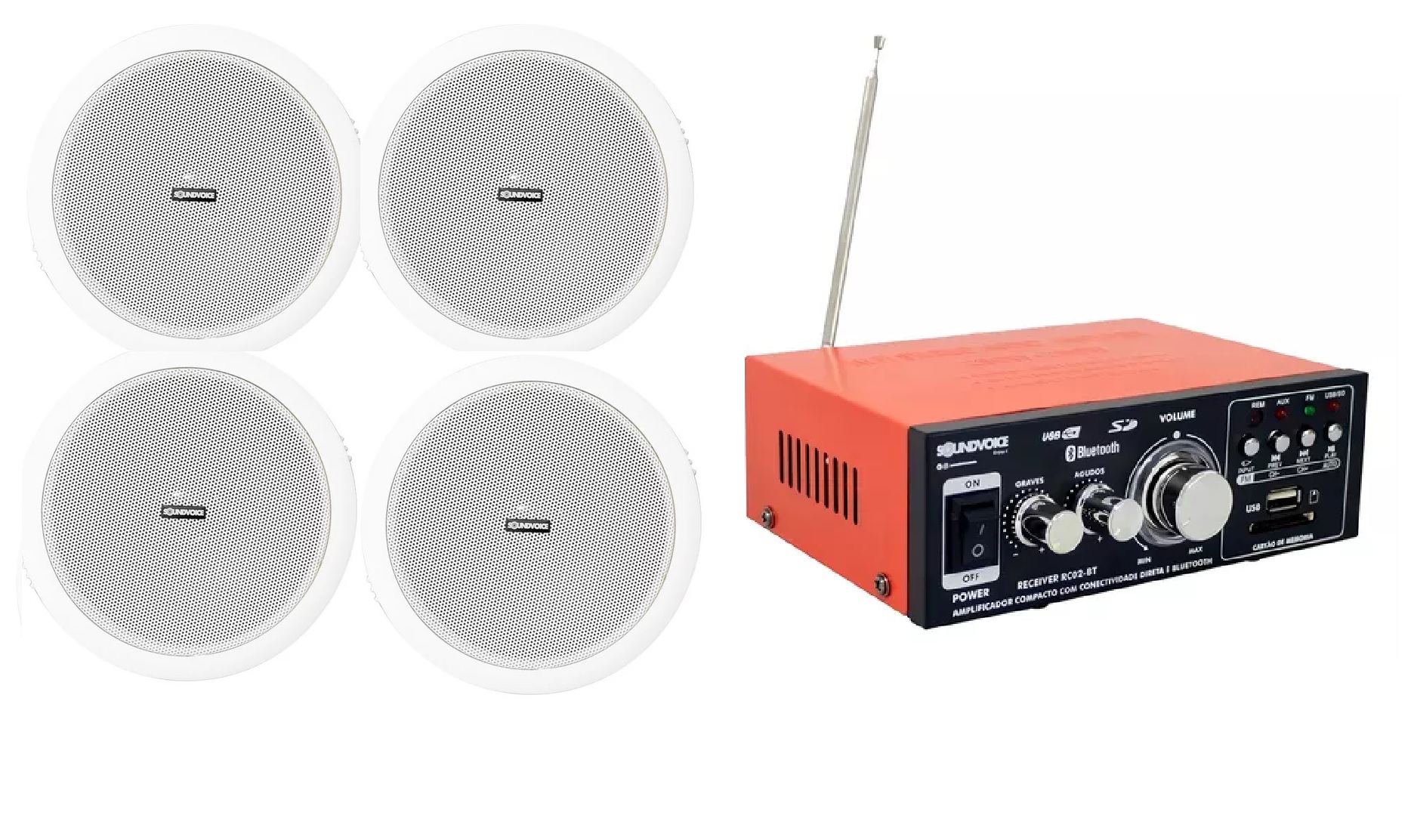 Qualidade sonora: Áudio claro e equilibrado para ambientes comerciais.