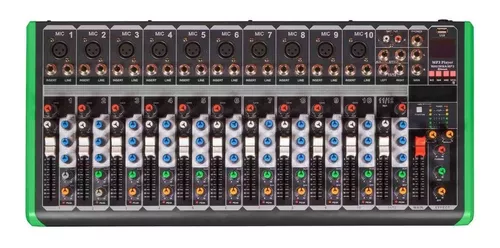 • Canais: 12 (10 mono com pré-amplificadores e Phantom Power +48V, 2 estéreo)